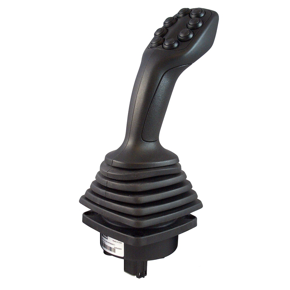 Parker’s IQAN-LC5-X05 is a large, analog joystick for the mobile market. The ergonomic MP handle option provides a variety of control interfaces. Combinations of buttons, thumb wheels, and trigger are available.