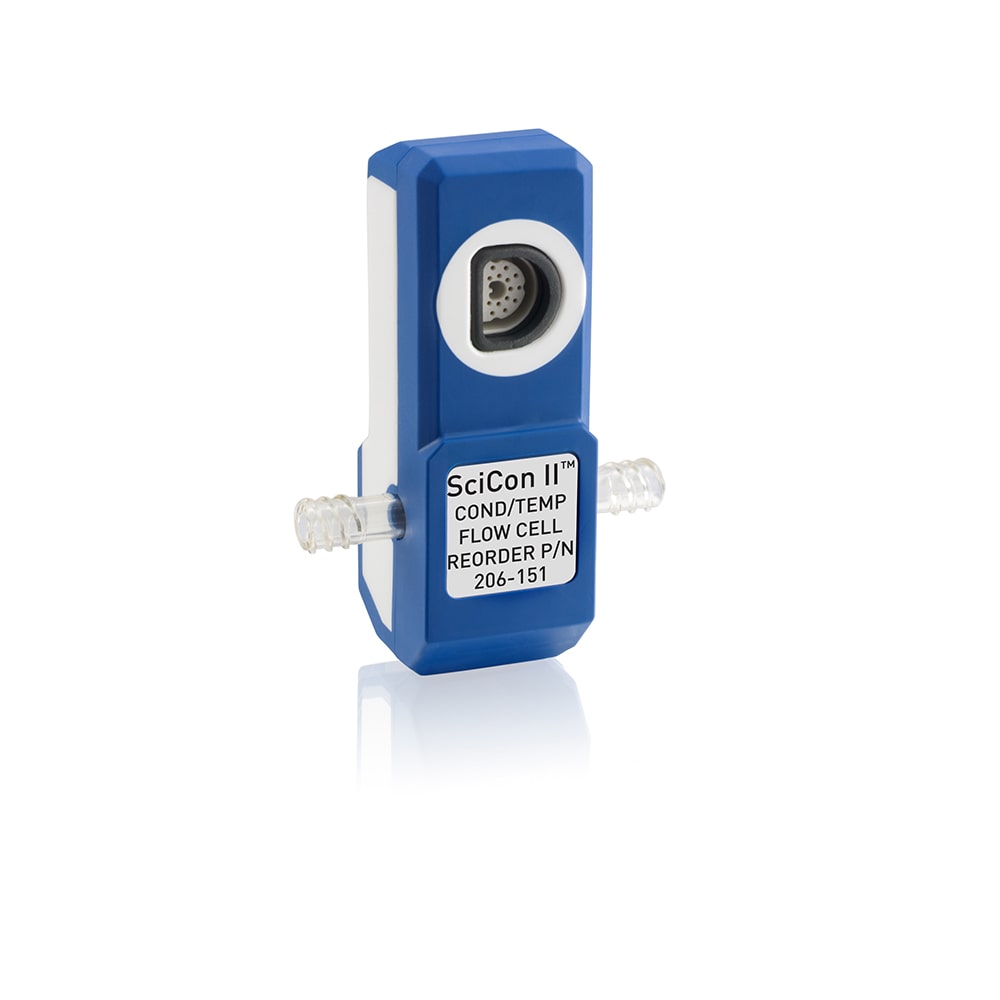 The next generation SciCon II Series is a patented digital sensing and monitoring system that simultaneously monitors, displays, and documents both conductivity and temperature from a single-use, pre-calibrated sensor.